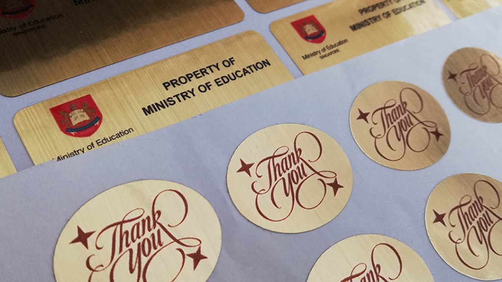 Depending on the requirement, they can be rigid metal plates or flexible adhesive-backed labels with a metallic finish.