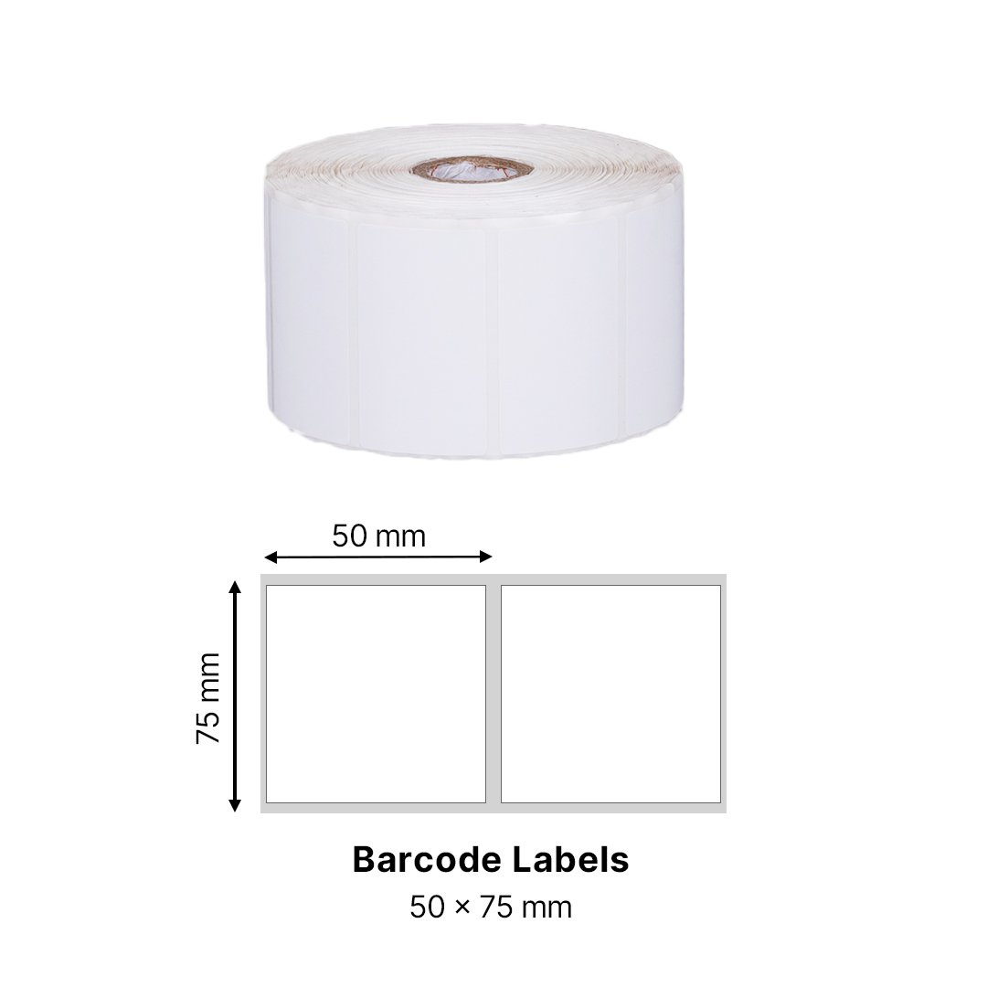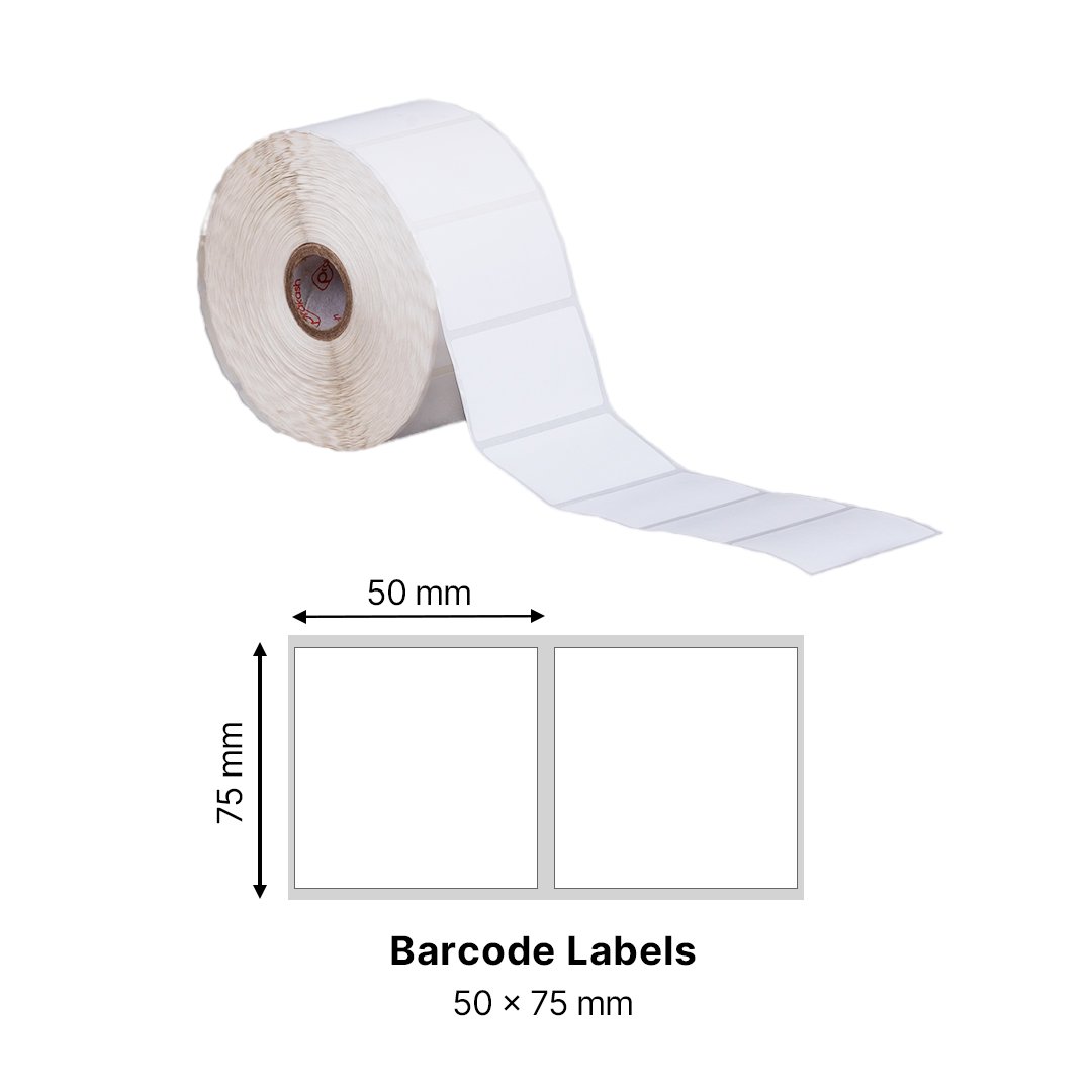 Reliable 50×75mm extended format labels designed in a barcode label configuration, offering maximum vertical space for detailed product or asset information while boosting productivity with dual-label printing. These industrial vertical labels are ideal for warehouses, logistics, and retail applications requiring longer text and clear barcode visibility.